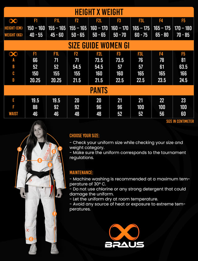 | F2 | 155 – 165 cm | 50 – 65 Kg |